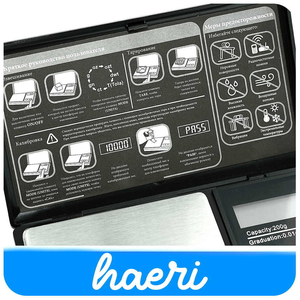 - პროფესიონალური ციფრული ჯიბის სასწორი 500 გრ. x 0.1 გრ.