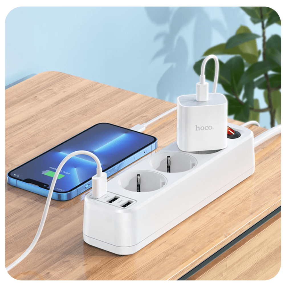 დამაგრძელებელი (3 როზეტი + 3 USB 2,4A) Hoco NS2 18W 1.8მ