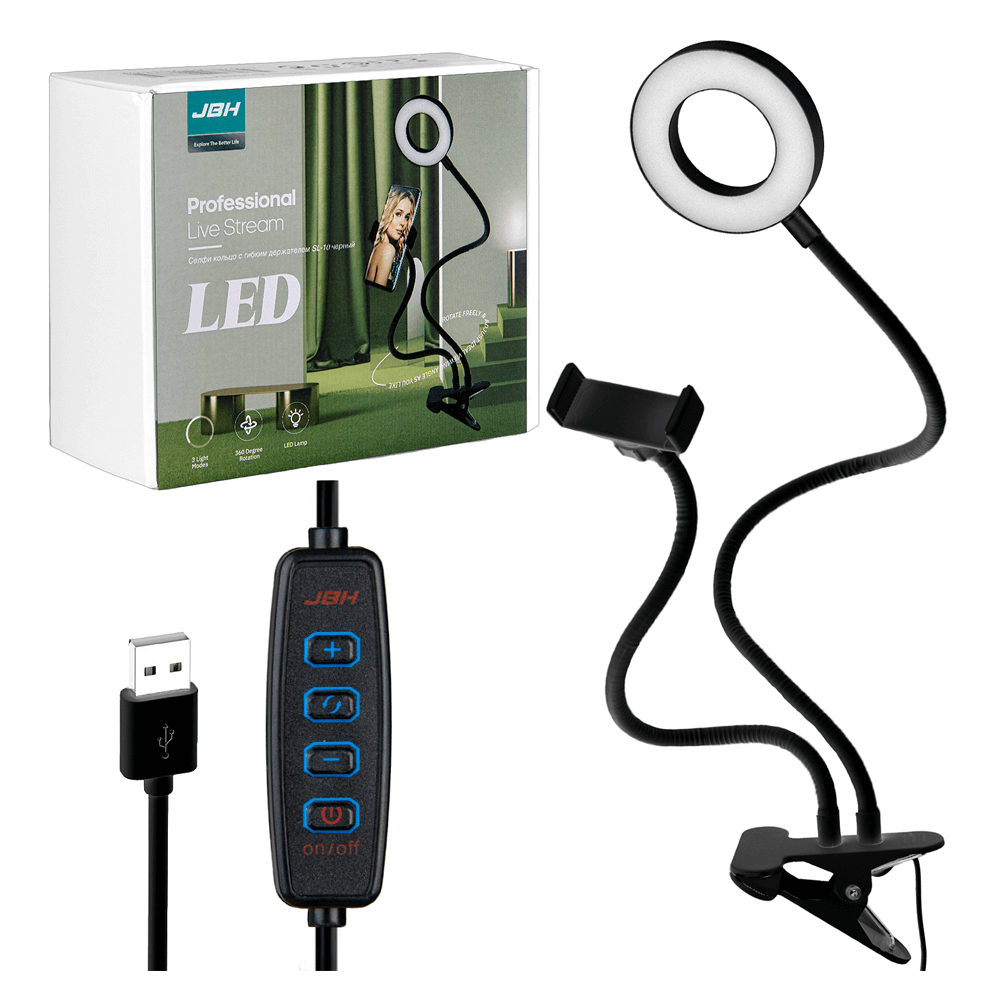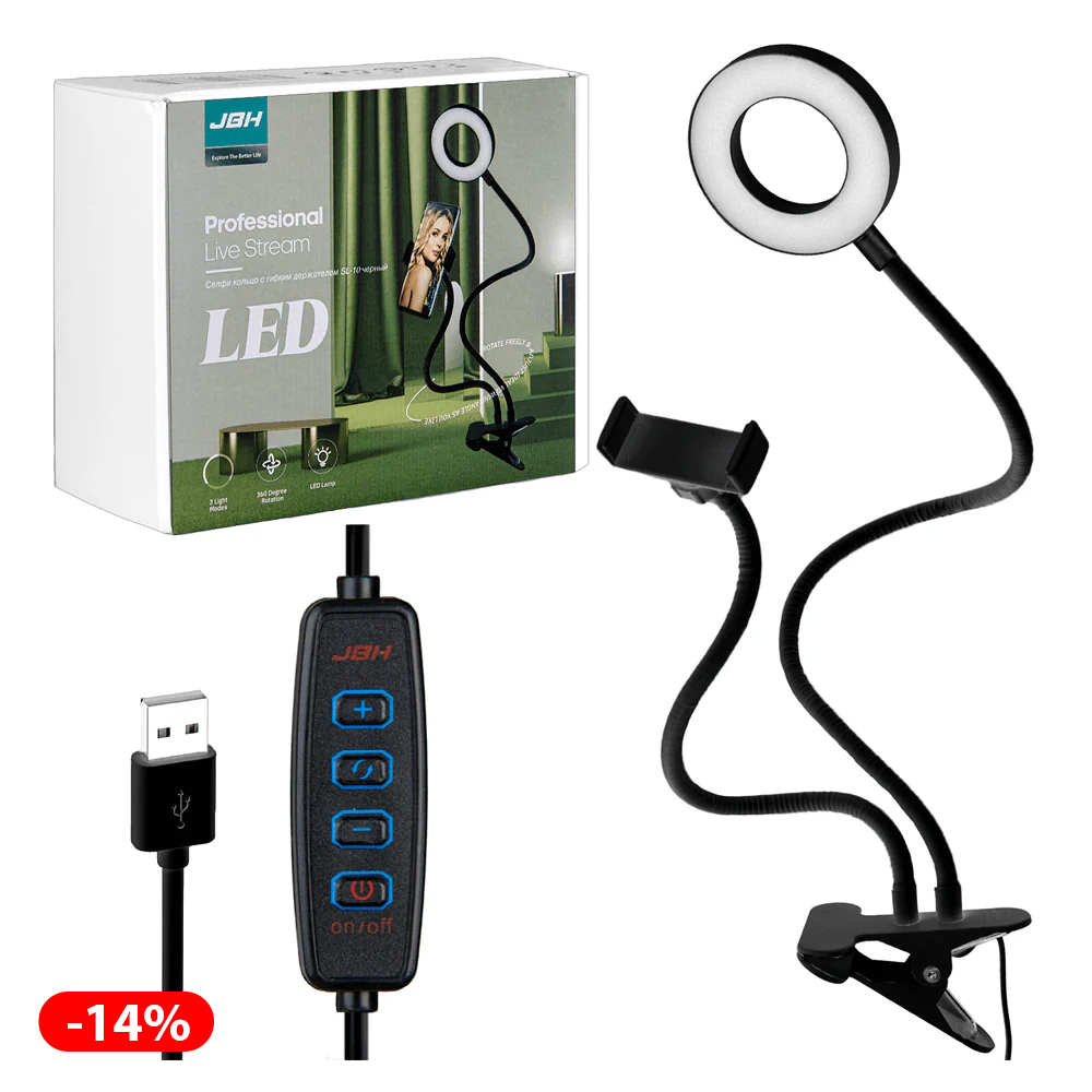 - კვება: USB-ის მეშვეობით, ჩაშენებული სელფი რგოლში, 5V/1A კვების ბლოკიდან