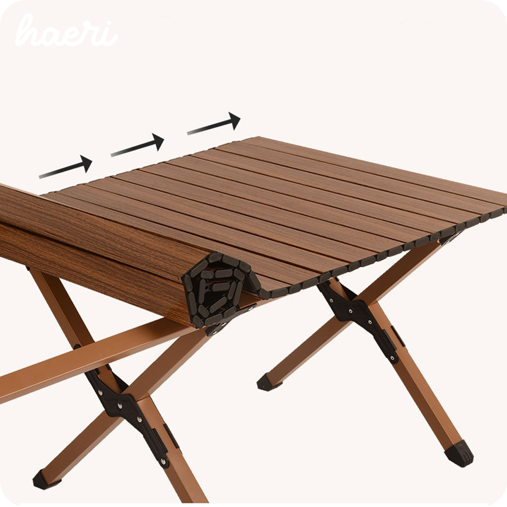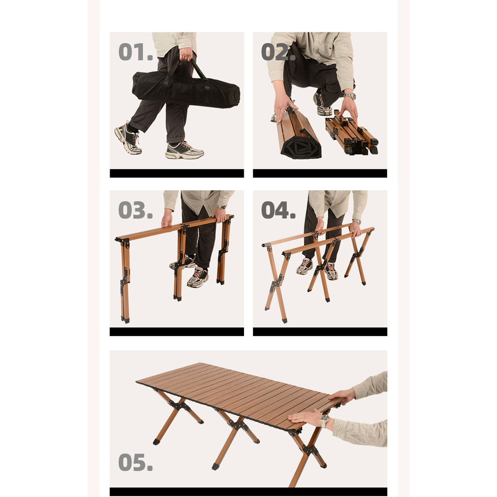 დასაკეცი კემპინგის მაგიდა მარტივად იკრიბება. ზედაპირი იკეცება რულონივით და კომპაქტურად ინახება. გადაადგილება და შენახვა ძალიან მოსახერხებელია.