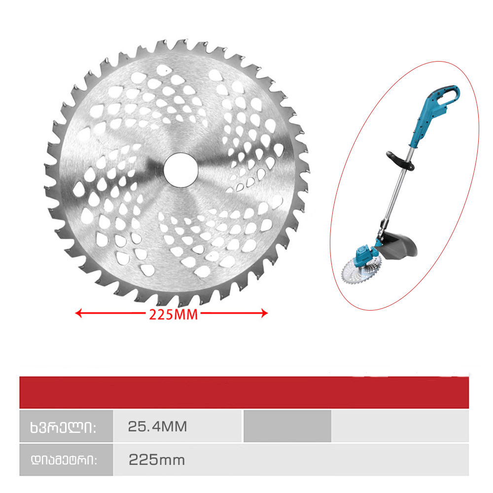 ბალახის სათიბის 225მმ დანა-დისკი, 25.4მმ ხვრელით, კარგი ხარისხით და ეფექტით.
