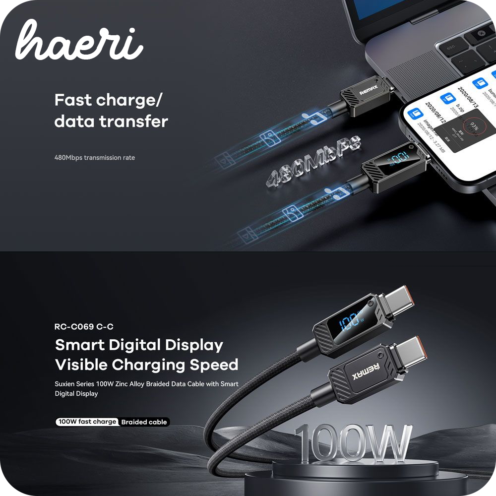 REMAX RC-C069 Suxien Series — ეს არის მაღალი ხარისხის Type-C-დან Type-C კაბელი, რომელიც უზრუნველყოფს 100W სწრაფ დამუხტვას და მონაცემთა გადაცემას.