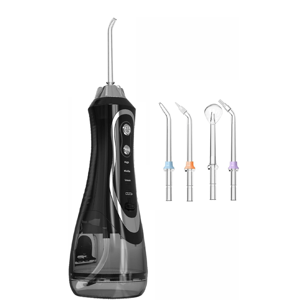 პირის ღრუს ირიგატორი შავი 300 მლ წყლის ავზით და 4 თავაკით
