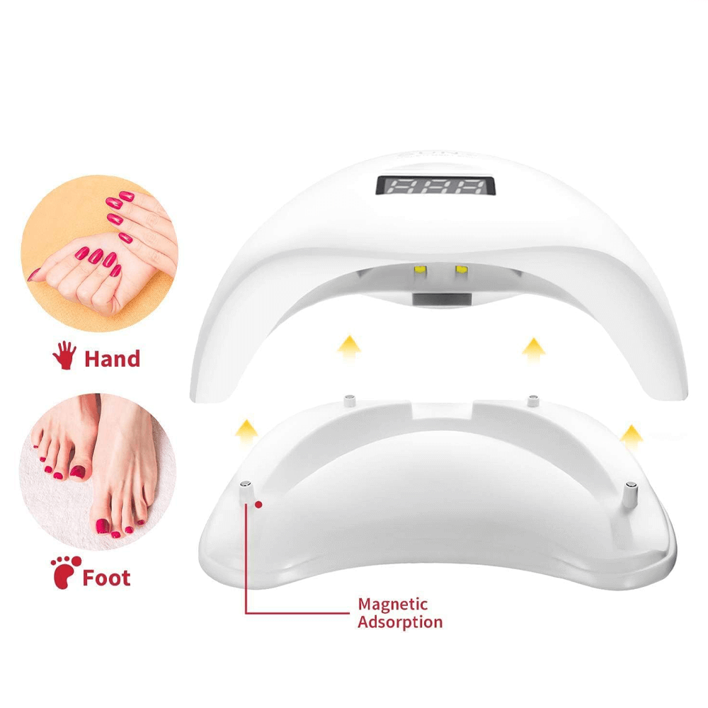 მოდელი: SUN 5  ტიპი: შილაკის აპარატი სიმძლავრე: 48W ნათურების რაოდენობა: 24 LED მანათობელი ტალღის სიგრძე: 365ნმ - 405ნმ ძაბვა: 220-240 V ტაიმერი: 10S/30S/60S მასალა: ABS პლასტმასი LCD ციფრული ეკრანი გამოიყენება როგორც ხელის ასევე...